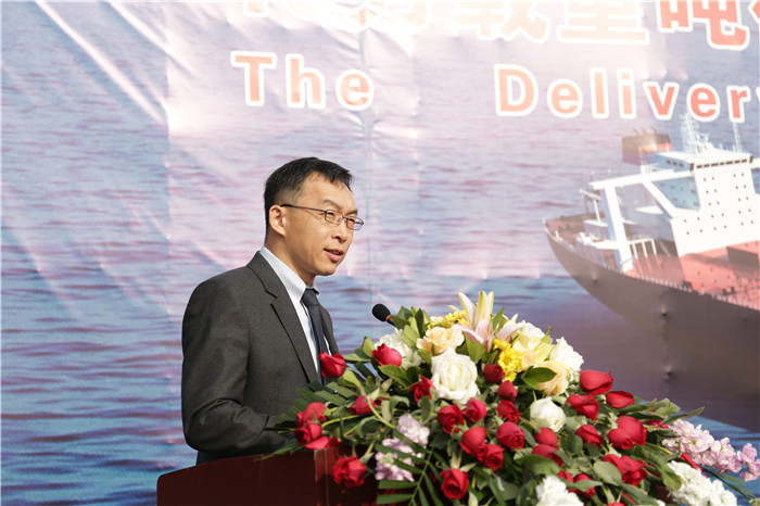 楊志鋼在致辭中指出,新型“海上巨無霸”是武船精心打造的新一代大型礦砂船,具有“結構安全、綠色環保、節能減排、油耗更低、經濟性更好、營運安全便利”等特點。自該批產品開工以來,在船東、船檢、中船重工集團公司的共同關心和支持下,武船統籌經驗豐富的項目團隊精心組織策劃,以一以貫之的精品工程要求全力鑄就又一艘精品船。經過7天的航行試驗,該船50余項海試項目全部達到設計要求,得到船東、船檢的高度認可,備品備件已全面交付,具備交船條件。該船的交付,將進一步深化武船與招商輪船的合作,推動建立命運共同體,全面實現優勢互補、互利共贏。同時,也為武船在中巴礦砂船航運中貢獻力量、積極參加“一帶一路”建設、不斷提高自身核心競爭力和服務水平、打造世界一流裝備企業提供有力支撐。產品交付后,船廠將堅持“100+1”和“總裝廠負全責”的質量理念,全心全意做好已交付船舶的售后服務工作和后續船的建造工作,確保40萬噸系列礦砂船在2019年一季度前全部達到交付條件,并以更高的質量、更高的管理、更高的標準做好后續32.5萬噸礦砂船的設計、建造工作,矢志打造出更多好用、頂用的高質量產品,為中國的運輸和造船事業發展貢獻力量。