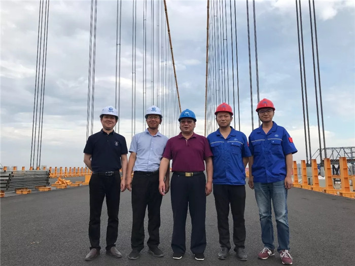 田軍首先親切慰問了項目部成員,詳細了解了楊泗港大橋目前的進展情況,察看了現場施工情況。田軍對楊泗港大橋現場安裝工作取得的成績表示祝賀,并對項目后期總體計劃的實施和部署提出了指導性意見。田軍要求,項目部要根據總包工期要求做好工程總體計劃安排和跟蹤,在施工過程中要嚴格遵守工藝要求、堅決執行質量紀律,同時做好高空、臨邊作業及防暑降溫等措施,確保項目保質保量、安全高效地推進。