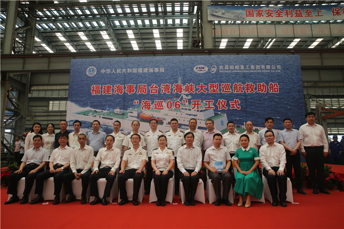 2019年5月23日上午,福建海事局臺灣海峽大型巡航救助船“海巡06”開工儀式在武船集團雙柳基地六連跨內(nèi)業(yè)車間舉行。