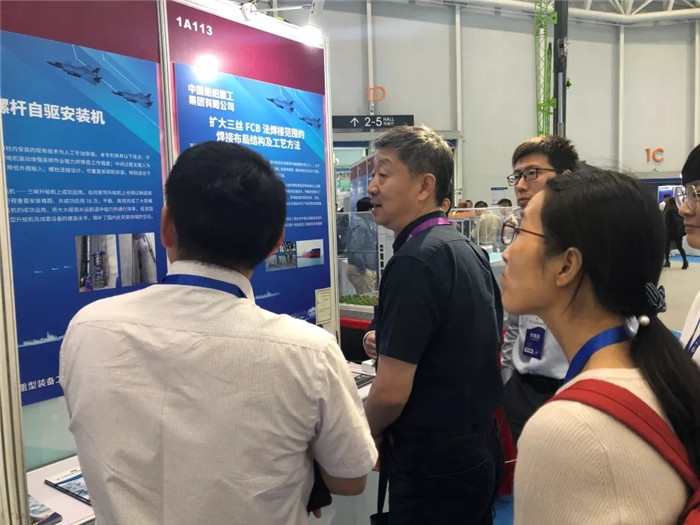 ▲國防知識產權局原副局長、總工楊建兵參觀武船展位
