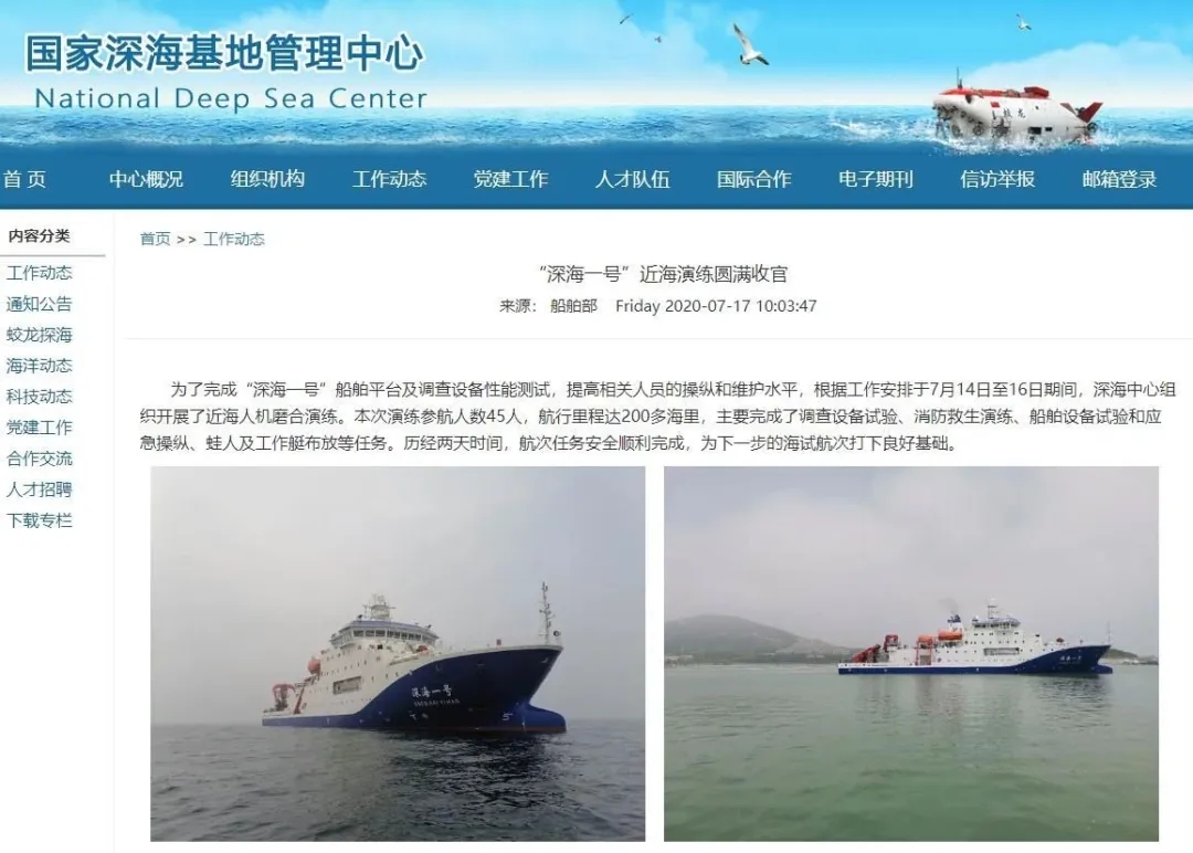 從國家深海基地管理中心獲悉