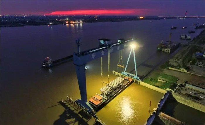 ▲白洋長江大橋首個鋼桁梁節(jié)段發(fā)運現(xiàn)場