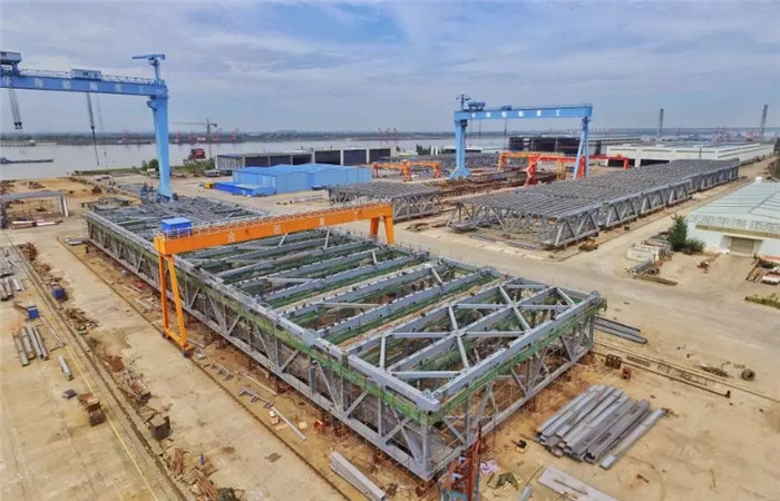 白洋長江公路大橋作為武船重工股份承接的首座千米級跨徑全栓桁架橋,總重達(dá)14333.68噸,38節(jié)梁段分7輪進(jìn)行制造和總成拼裝工作。