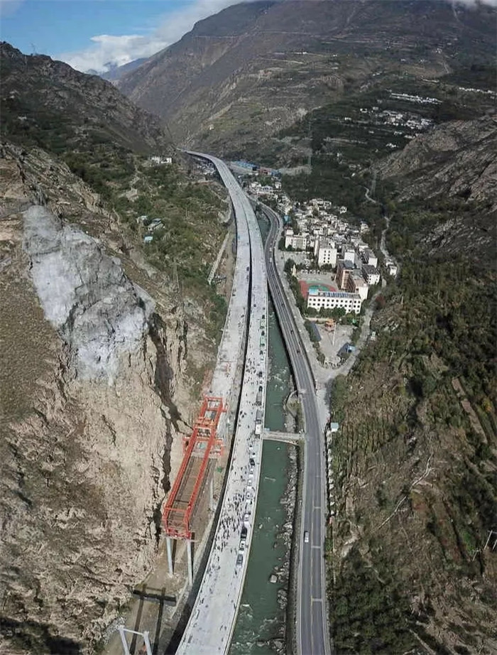汶川克枯大橋是汶馬高速的控制性工程之一,全長6.43公里,整橋采用鋼管混凝土組合,其重量僅為混凝土結構的一半,又同時具有鋼管和混凝土橋梁的優點。它的建成,代表著在高烈度地震區、復雜地形山區的高速公路建設上,找到了一種抗震性能好、經濟適用、工業化程度高的新橋型。