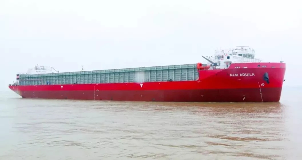 ▲新型13000噸甲板運輸船2號船離廠