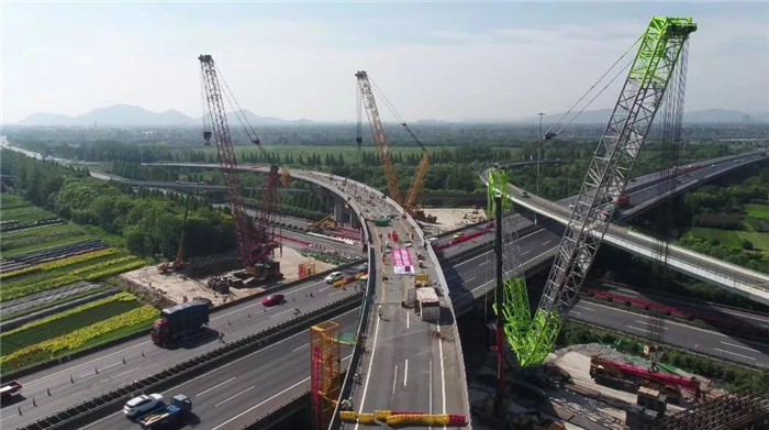 紅墾橋位于蕭山機場附近的一處交通樞紐點,周邊有G92(杭甬)、G2504杭州繞城高速公路東線和G60(杭金衢)三條高速縱橫交錯。項目拼裝場地狹小,施工周期緊迫,施工技術難度大,工藝可循先例少、工期緊張、全程涉高速施工安全風險高、多地聯動交通組織難度高等諸多困難。