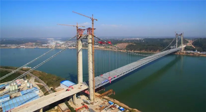 湖北白洋長江大橋是宜昌至張家界高速公路在宜昌境內跨越長江的通道,也是湖北省“753”骨架公路網中規劃“縱6”的重要組成部分,全長2160米,主跨1000米,為雙塔鋼桁梁懸索橋。