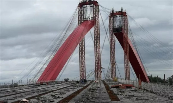 單拱斜跨斜拉橋,紅色身姿真美麗,