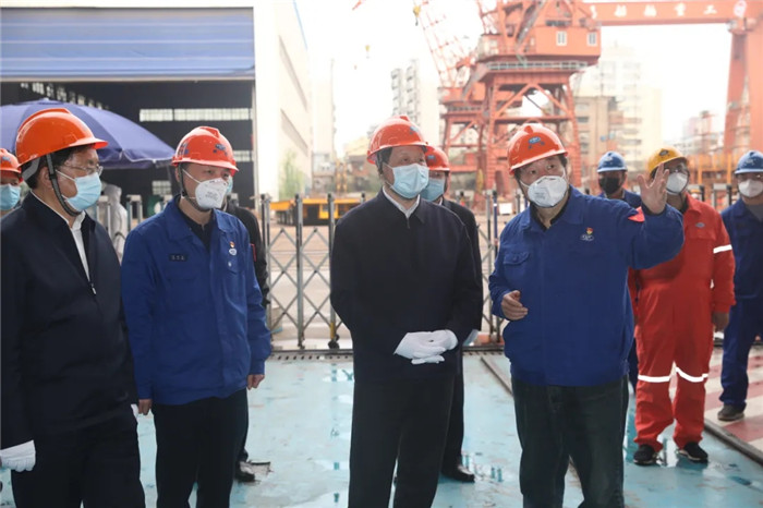 3月25日,湖北省委書記應(yīng)勇到武船集團(tuán)調(diào)研復(fù)工復(fù)產(chǎn)、加快發(fā)展情況。省委常委、武漢市委書記王忠林,副省長曹廣晶及省委、省政府有關(guān)部門負(fù)責(zé)同志參加調(diào)研。武船集團(tuán)黨委書記、董事長陳?劍?黨委副書記、總經(jīng)理梁師清及武船集團(tuán)有關(guān)部門負(fù)責(zé)人陪同調(diào)研。