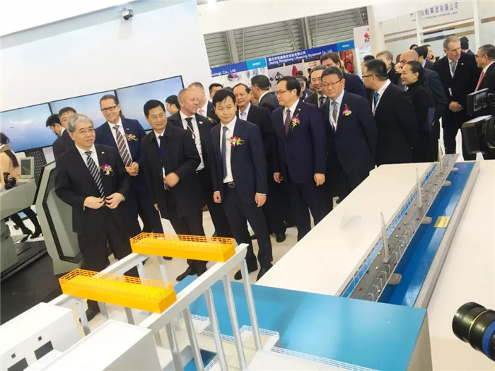 ▲姜明寶、吳金城、郭大成、李長印、陳冬等嘉賓在雷凡培和楊金成的陪同下參觀展位