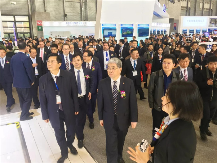 12月3日,交通運輸部總工程師姜明寶、上海市經濟和信息化委員會主任吳金城、中國船舶工業(yè)行業(yè)協(xié)會會長郭大成、中國造船工程學會理事長李長印、中國海警局副局長陳冬等嘉賓,在中國船舶董事長雷凡培和總經理楊金成的陪同下參觀展位,聽取了參展情況介紹,對集團公司重組成立表示祝賀。