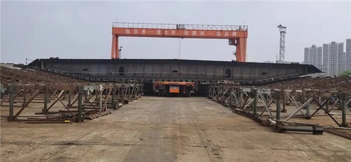 棋盤(pán)洲長(zhǎng)江大橋最后一輪鋼箱梁節(jié)段下胎架