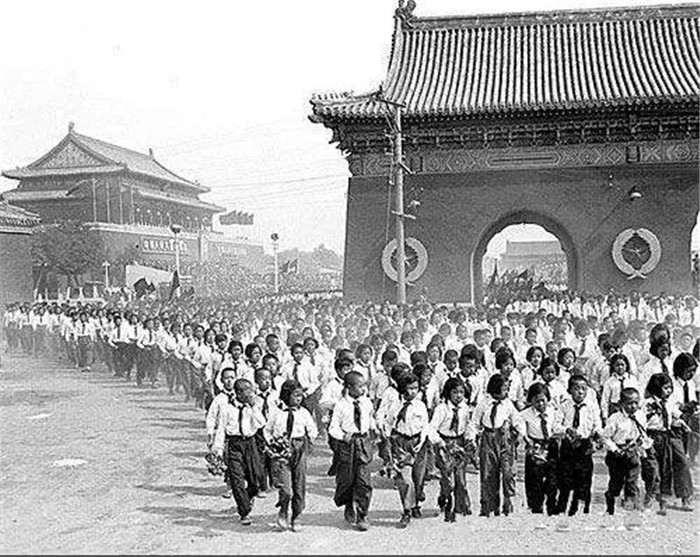 ▲1950年,天安門廣場(chǎng)上的少先隊(duì)員