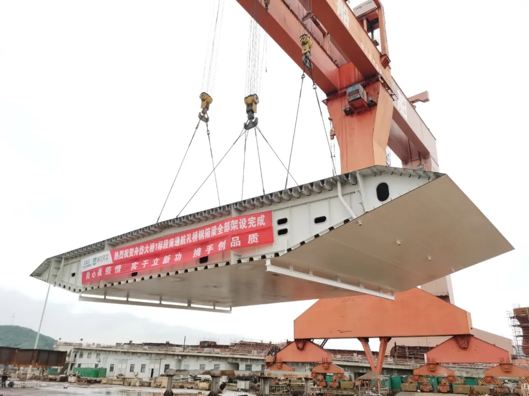 復工后,武船重工股份堅持疫情防控和復工復產(chǎn)兩手抓,開展勞動競賽,在保證質(zhì)量和安全的前提下,加快生產(chǎn)進度,最終在三個鋼結(jié)構(gòu)標段中拔得頭籌,在臺風來臨前完成了全部節(jié)段的吊裝,降低了橋位施工風險。