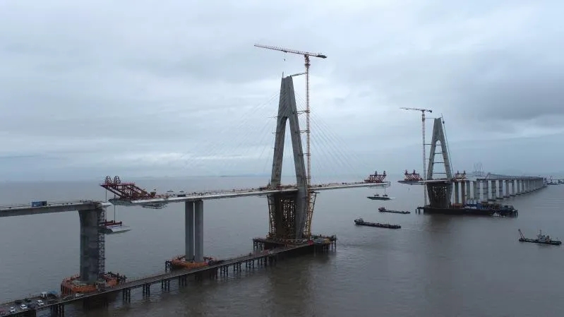 舟岱大橋南通航孔橋邊跨合龍后,將進入橋面鋪裝和橋梁附屬設(shè)施施工階段。