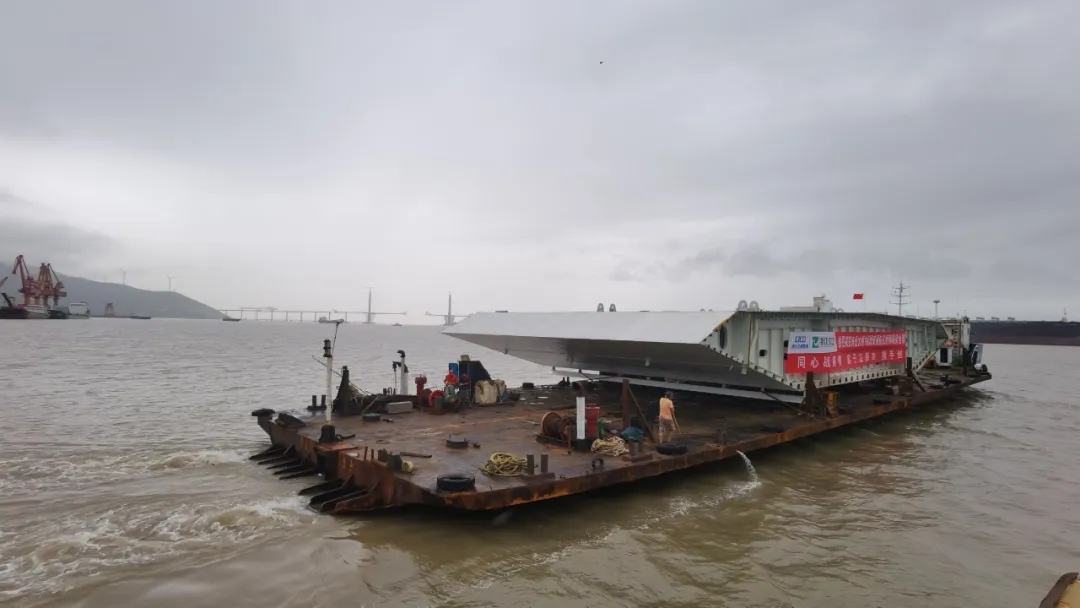 最后一個鋼箱梁節(jié)段發(fā)往橋位