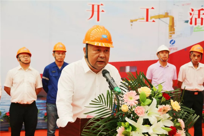 開工儀式上,武船集團船舶公司黨委書記陳濤代表武船集團對蒞臨今天活動的來賓表示熱烈的歡迎并致辭,他表示,本項目的順利開工,得益于各方前期對本項目的高度重視和全力支持。船舶公司必將按照武船集團“100+1”和“負全責”的質量理念建造實施,確保船舶早日交付,同時希望以本項目為契機,進一步深化與中海油服的合作,實現合作共贏,以最優的產品、最好的服務回饋中海油服的信任和支持。